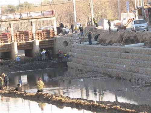 低碳钢丝进行和编制,使之成为格宾网片,之后对其进行剪裁,并拼装成为与要求响度的格宾网箱笼,利用块石进行填满之后在堤防以及河岸与路基防护中进行应用。这种防护是柔性防护功能,能够保证河道以及堤防岸坡的稳定性和安全性,使工程建筑和生态环境保护之间实现有机结合。