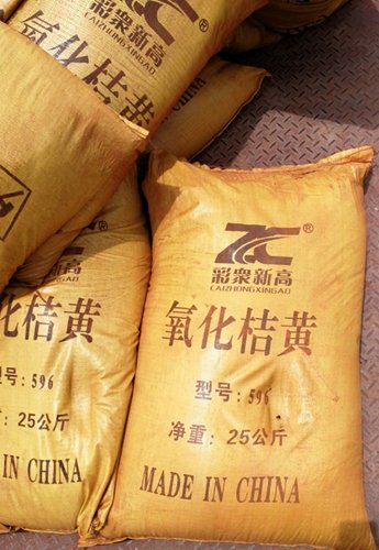 颜料,产品显橙黄色。产品以粉末形式交付客户,可应用于各种建筑材料,