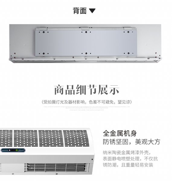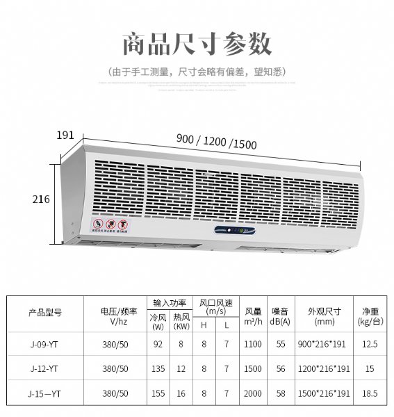 JRM系列风幕机是一种通用型热空气幕,此风幕机是综合了现有的各种型号的热风幕的基础上,研制出的*新产品。广泛应用于工厂、冷库、医院、写字楼、商超、银行、候车室等公共场所。采用离心式电机,优点是噪音低、风量大、风速高、运行平稳。是北方地区冬季隔绝冷空气的*好产品。本产品严格按照JB/T9067-1999、Q/SYJ0201-1999标准生产,经辽宁省产品质量监督所跟踪检验为合格产品。