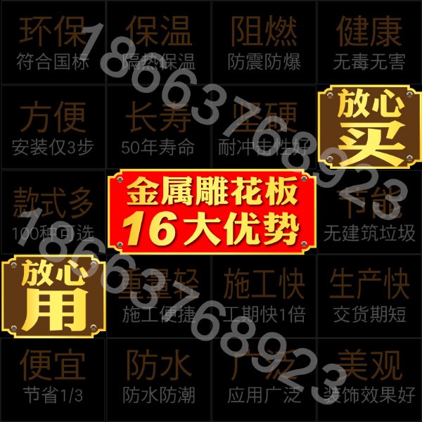 金属雕花板采用*、无异味、*的环保型原料,给予建筑绿色的保护和装饰。
