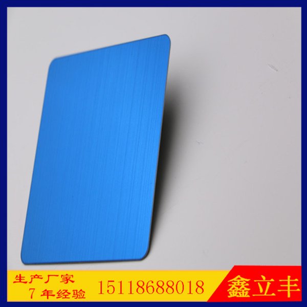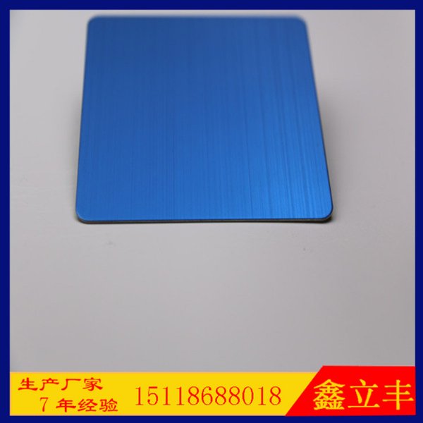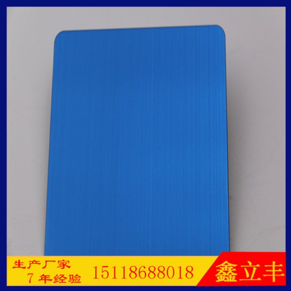 不锈钢宝石蓝镜面板。宝石蓝镜面板它是在银白色的不锈钢表面形成一层透明的氧化膜,通过该氧化膜对光的干涉作用而形成的色彩。不同厚度的氧化膜可以产生不同的色彩。同样厚度的宝石蓝镜面板氧化膜,随着光线入射角度不同,即使同种光也会显示不同的颜色。彩色不锈钢通常的色彩系列有:茶色、黑色、深茶红色、紫蓝色、藏青色、宝石蓝色、蓝色、灰色、淡黄色、金黄色、金红色、紫红色、天蓝色、绿色、黄绿色等。