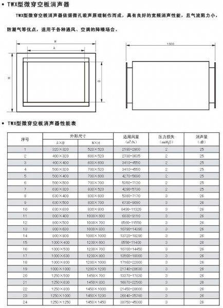 WX型微孔板消声器为双腔式结构,吸收频带宽,对各频带消声量都较平直,消声量大,特别对低频部分消声效果明显,优于采用纤维性吸声材料结构的阻抗复合式消声器。