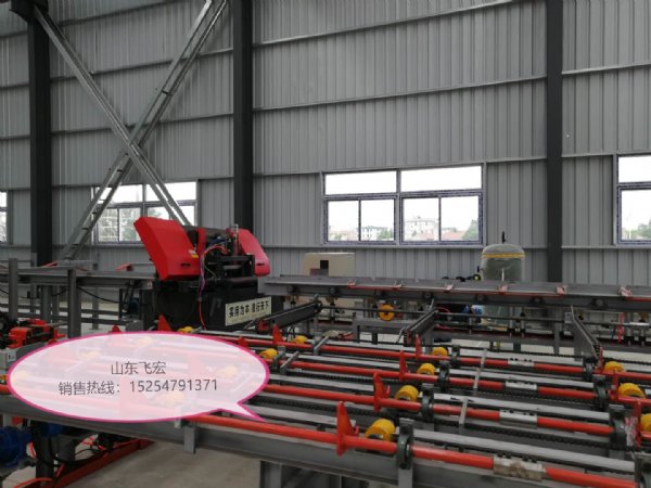FHST-40SAC型数控钢筋锯切套丝打磨生产线主要由备料架(1)、锯前输送轨道(2)、锯切主机(3)、锯后输送卸料轨道(4)、送料平台(5)、一号套丝辊道(6)、一号套丝机(7)二号套丝机(8)、二号套丝辊道(9)、一号打磨机(10)、一号打磨辊道(11)、二号打磨辊道(12)、二号打磨机(13)、储料平台(14)、电控柜、操作柜十四部分组成。设备采用数字化控制,响应速度快,具有结构简单、易操作、效率高、功能强、维护方便的特点;