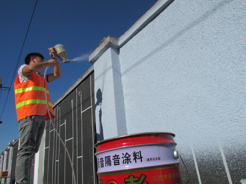 干透之后,再喷外墙吸音涂料。吸声材料的喷涂厚度不应小于5mm,吸声材料应一道一道的喷涂,每一道