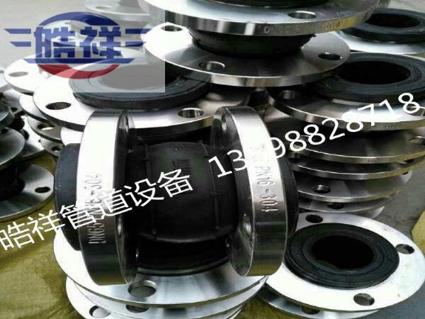 橡胶接头一般由内胶层、织物增强层(增强层有多层刮胶锦纶帘子布)、中胶层、外胶层、端部加固金属环或钢丝圈,经高温、高压硫化成型后,与金属法兰或平行接头松套组合而成的复合