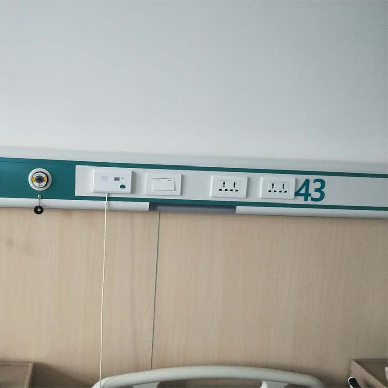 医用设备带固定在病房床头上方的墙壁上,用来安装