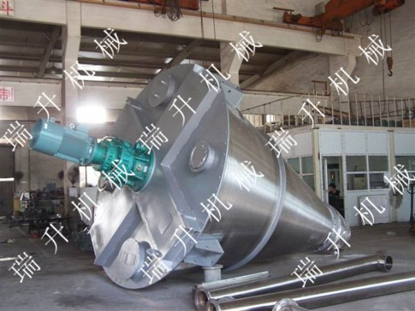 立式锥形混合机的搅拌浆与容器壁之间间隙非常小,以防止物料粘结