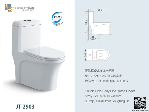 晶陶卫浴双孔超漩连体马桶座便器JT-2903