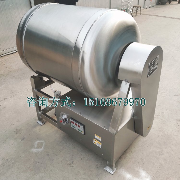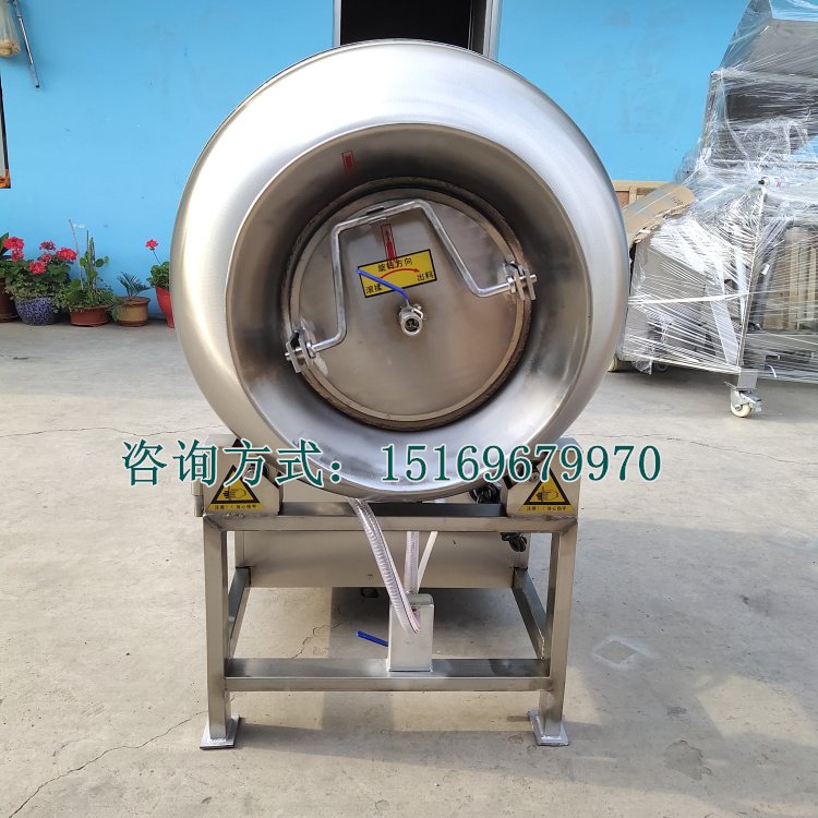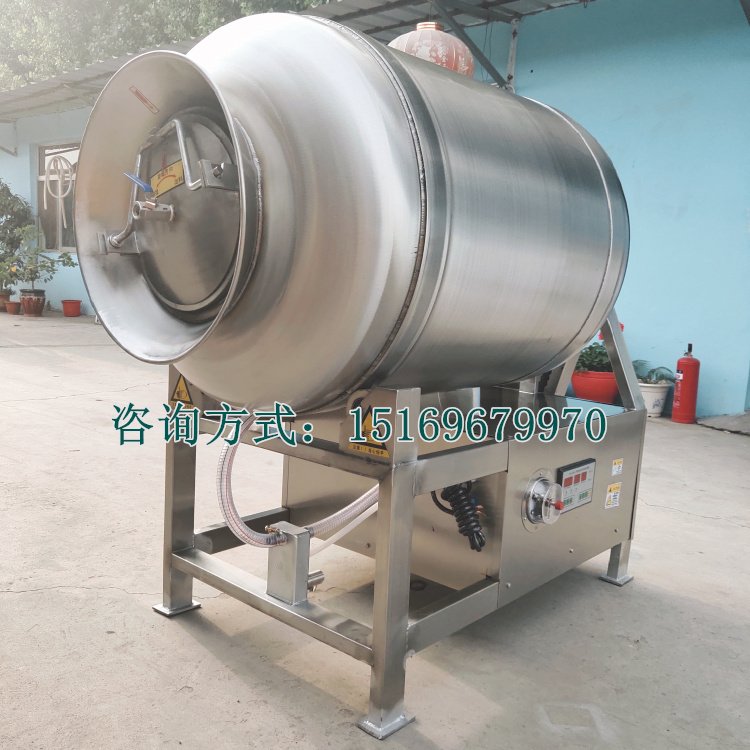 工作原理:腌制入味嫩化肉质,提高出品率,产品收搜小保证了肉的形状外观。物料肉通过螺旋桨叶的强制循环按摩、摔打、静置,并使肉块在真空及常压状态下交替呼吸,加速盐水分布和吸收,促进肌纤维蛋白的溶解和提取,提高产品质量,降低蒸煮损失。