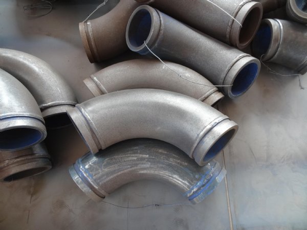 一是稀土合金耐磨弯头,是在磨损严重的部位,如弯头,异径管、吸水口等处采用模型整体铸造,然后再进行机械加工的方法,特别是在弯头外侧磨损尤为显著的部位,对外径采用变更圆心的方法进行设计,使磨损严重的部位局部加厚,而且还能根据各种要求,制作出各种不规则开关的管件来满足设计要求,直管是采用离心铸造。