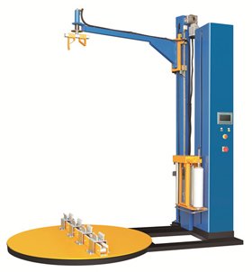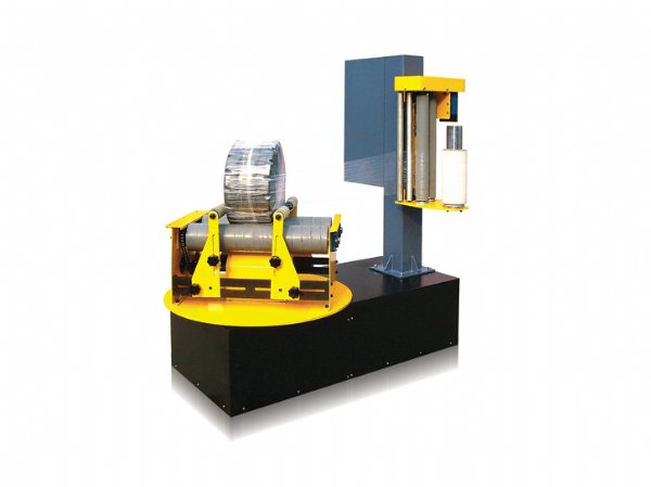缠绕包装机集成设计成具有缠绕和覆膜两种功能的包装机。结构紧凑,占地面积小,动作配合精准,自动化程度高,启动后自动完成整个包装包装过程。