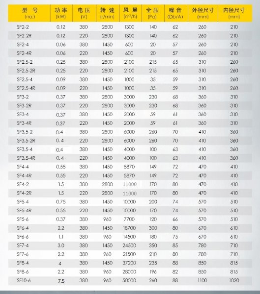 SFG系列低噪声轴流通风机系我公司*新研制的新产品,采用从声源入手,低转速、高压力系数的设计方法,研制成宽叶片、大弦长、空间扭曲、倾斜式叶形,使其在低速驱动的前提下,达到所需风量、风压的目的,具有效率高、噪声低、能耗省、运转平稳等特点。 该系列产品广泛应用于工况企业、民用建筑的壁式排风、岗位送风、管道通风、屋顶通风等,应用于化工、食品、医药、冶金等工矿企业及各类民用建筑的通风空调系统。