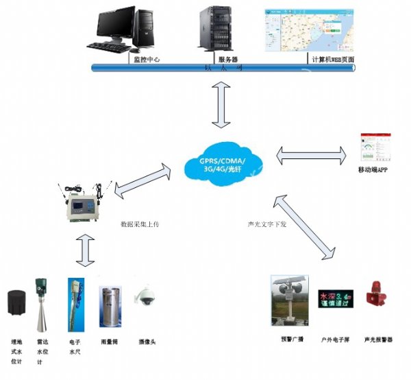 系统由自动监测设备、预警终端设备、终端显示设备、遥测终端设备和远程管理平台组成。