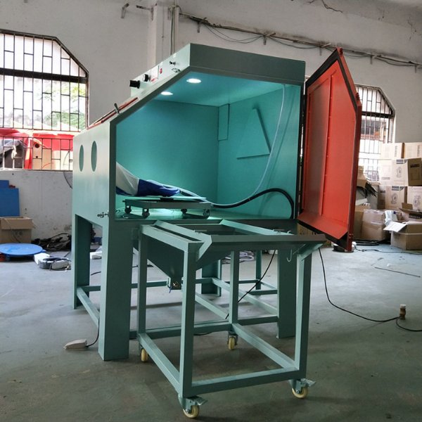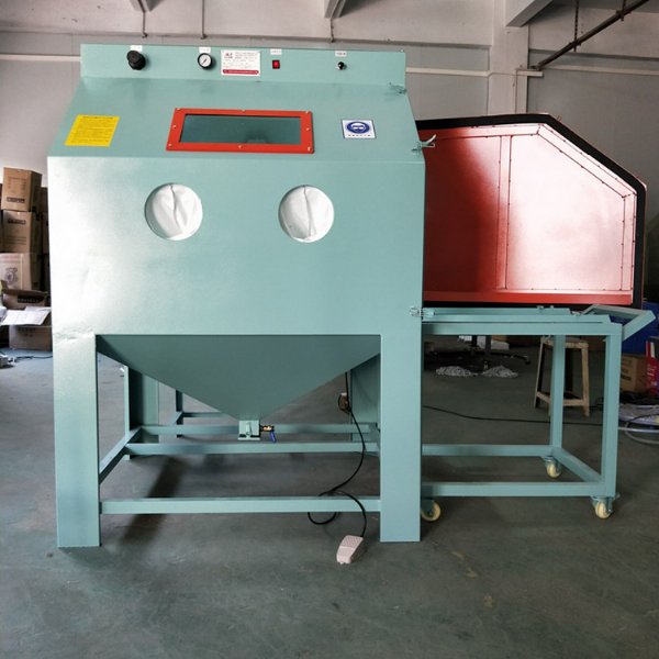 模具喷砂机是一种能使用磨料(金属磨料和非金属磨料)借助压缩空气动力,喷射到工件表面的一种机械设备。将磨料喷射到工件表面进行冲击研磨,把表面的杂质、杂色及氧化层清除掉,同时使介质表面粗化,使基材表面残余应力和提高基材表面硬度的作用。
