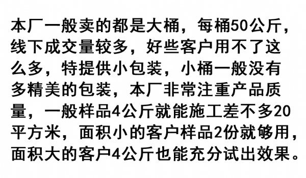 建议掺量为水泥量的10%*佳,加入该产品后应适当延长砂浆的搅拌时间,以便能到到更理想效果!