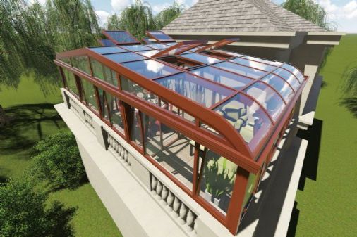 铝型材搭建的新型建筑,采用氟碳工艺制作,防潮防晒、寿命长、耐用性较强;采用圆弧外观,简洁大方,阳光房可根据不同建筑风格及个人爱好,可以制作成单面斜顶、人字形顶、转角型顶、