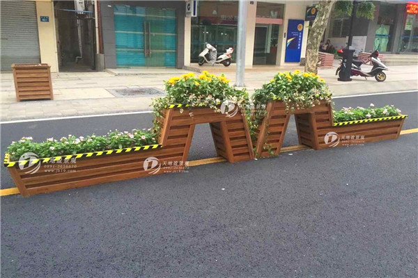 6. 铝合金花箱的木纹色外观与城市环境相得益彰,给城市增添了生态气息。