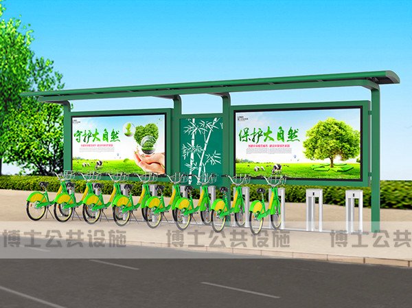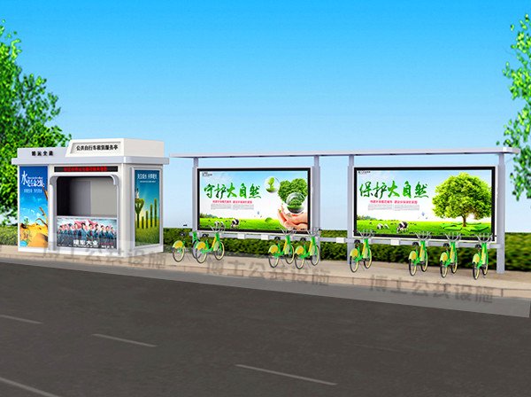 二、“公共自行车棚制作安装 智能广告自行车棚”应用和构造: