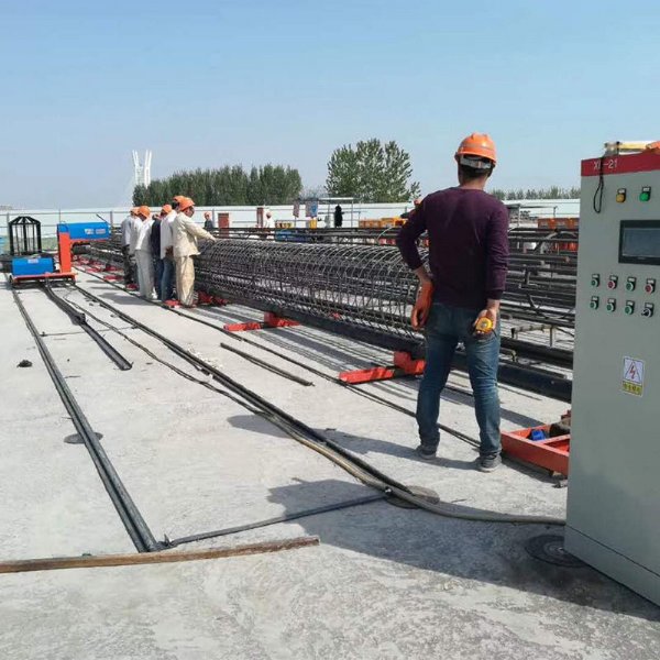 JK-3000型钢筋笼成型机主机是采用摩擦传动原理---即钢筋笼平置于2组橡胶动力托辊之间转动,小车载着线材平行于主机匀速行进,产生螺旋状绕筋,过程中施焊(亦可快速缠绕后施焊或绑扎)直至完成生产全过程。