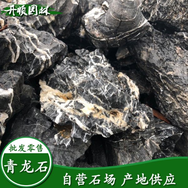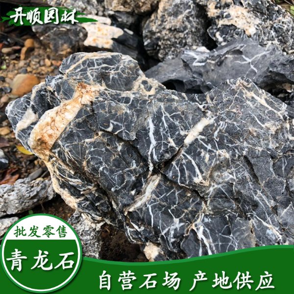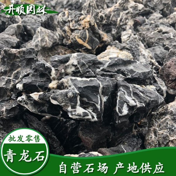 小英石一般是30公分以下的峰石为主,市场上也流行叫青龙石,故小英石和青龙石是同一款石材,青龙石只是用酸清洗过表面的泥土而显示出石材的白色纹路和其表面更为黑色的皮肤而得名 。