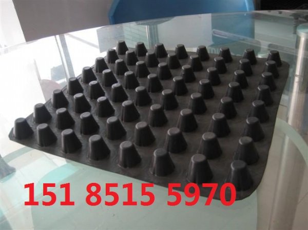 4、隔音及通风防潮功能:实验室数据表明,聚乙烯(hdpe)防排水保护板可有效降低室内14分贝,500HZ的噪音,具有明显的减噪隔音功能。 防水导水板在地面或墙面使用时,亦可起到很好的通风防潮作用。