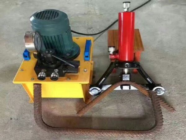 弯曲机由液压系统带动,该手提弯曲机体积小、重量轻、操作简便,二人即可完成对现场浇筑钢筋的弯折调直操作,而传统的弯折方法需人为弯折并事先需要焊接,相比之下更加省力,不但保证了精度,降低劳动强度,而且安全系数有了很大提高,同时也提高了工作效率。工作效率:一天10小时可以弯1000-2000根,一根钢筋用时5-10秒。