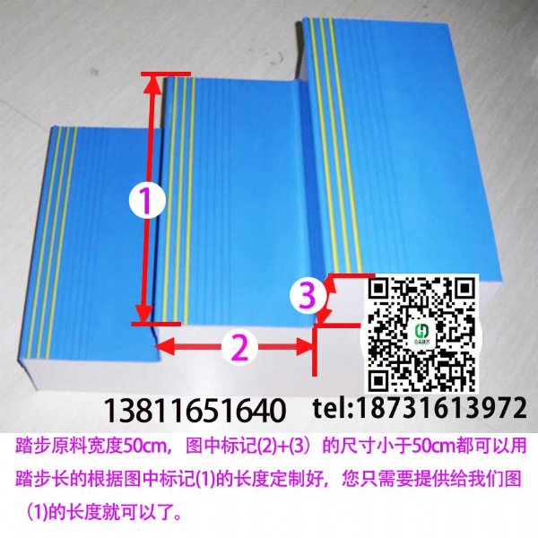 筑迪防滑楼梯踏步幅宽50cm,长度可以任意定制4米之内可以任意定制,楼梯防滑防滑踏步根据您楼梯的尺寸定制好,在测量时如果楼梯误差在0.5mm内可以按照一种规格定制,如果大于0.5mm要把每一步的尺寸单独测量进行定制,(经验分享:如果楼梯两边都是实墙,定制楼梯可以稍小于实际尺寸0.5mm左右)宽度不一致,要把每一步的楼梯尺寸都要告诉我们。