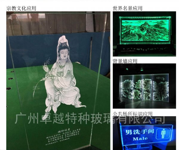 远程监控和操作,将会大幅度降低工人劳动强度和改善工作环境,并且大幅度提高生产效率和产品档次,是传统工艺玻璃加工工艺理想的升级换代。导光玻璃是以激光机将一定波长的激光打入玻璃内部,令其内部的特定部位发生细微的爆裂形成气泡,从而勾勒出预置形状的一种加工工艺,也泛指以这种工艺加工出来的工艺品。
