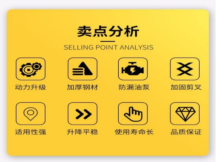 搬运车辆配查进行货物快速装卸等。根据使用要求,可配罟附属装置,进行任意组合,如固定式升降