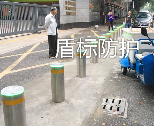路障,可电动、遥控或刷卡等方式控制升降,有效阻止外单位车辆进入和不法车辆闯入。