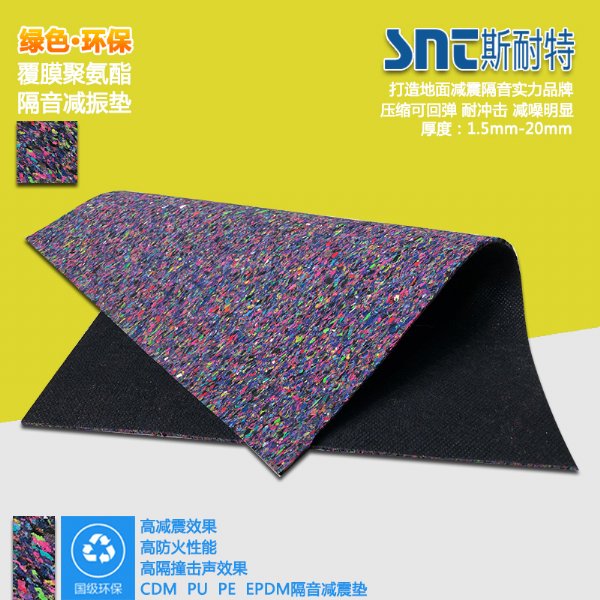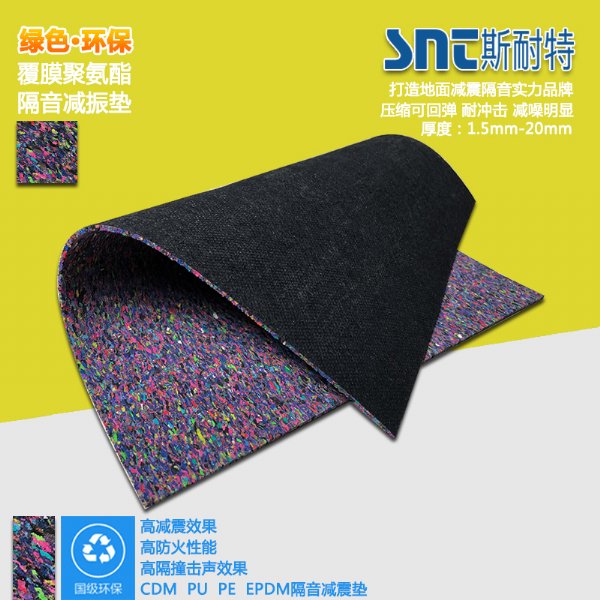 聚氨酯橡胶隔振隔音垫是绿色环保型产品,选用环保橡胶颗粒、弹性橡胶纤维、声阻尼材料和聚氨酯高分子