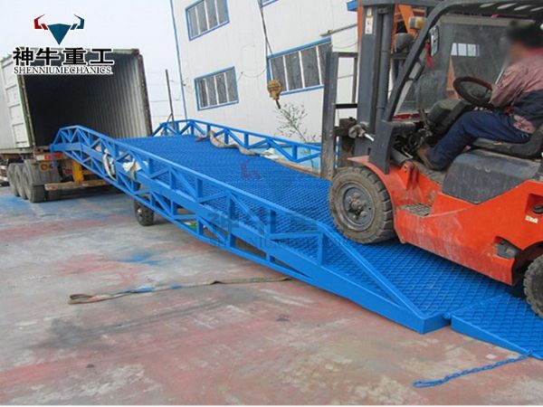 钢结构斜坡,叉车同时能直接驶入卡车车厢内部进行批量装卸作业。产品采用人工液压动力,不需接动力