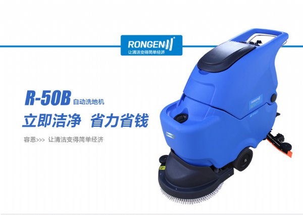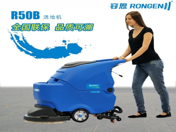 电瓶式洗地机R50B,洗擦、吸干一次性完成,洗刷吸干过的地面清洁如新,脏水、泥土、沙粒、油污统统吸入污水箱。简化清洁工作,大大减少清洁劳累和作业时间;快速解决 地板上的任何污垢,显著提高清洁卫生质量。特别适合500㎡-2000㎡场所使用。