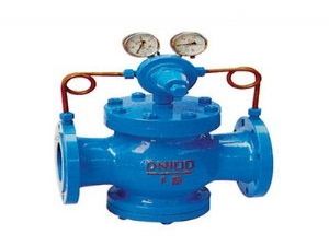 导阀主要由阀座、阀瓣、膜片、弹簧、调节弹簧等零件组成。通过调节调节弹簧压力设定出口压力、利用膜片传感出口压 力变化,通过导阀启闭驱动活塞调节主阀节流部位过流面积的大小,实现减压稳压功能。