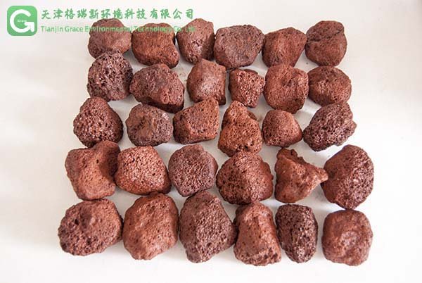 滤料经过选矿、破碎、筛分、研磨等一系列工艺加工而成的粒状滤料,其主要成份为硅、铝、钙、钠、镁、钛、锰、铁、镍、钴和钼等几十种矿物质和微量元素,表观为不规则颗粒,颜色为红黑褐色,多孔质轻,颗粒粒径可根据不同要求生产。