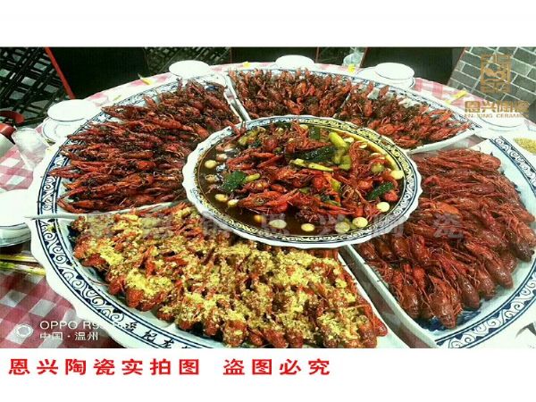 恩兴陶瓷海鲜陶瓷大盘菜2015年风靡了大半个中国,恩兴陶瓷海鲜大盘也成为了明星产品连续两次上新闻,我工厂一直保持纯手工制作,手工绘制陶瓷大盘,每款海鲜大盘我工厂保证1300度高温烧制,目前市场有部分网店假冒我公司产品蒙骗消费者,我公司每款陶瓷海鲜大盘都有画家落款,请广大客户仔细核对,我公司陶瓷大盘是经过质检部门专业检验,而且海鲜大盘的平整度都是很均匀,从之前的广东佛山,广州、深圳鹤山、合元等城市逐渐往江浙和北方蔓延。浙江一带要属温州火爆,温州各大酒店几乎同时上马,争先恐后的推出这个大盘菜。