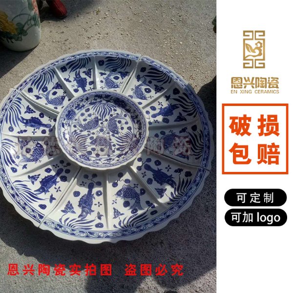 我们在2012年首次推出酒店海鲜大鱼盘以来。其瓷盘超大、耐高温、可以按照客户要求定做、特别适用于新型概念酒店取代传统小盘。器独特的大与素雅的青花画面很是吸引食客食欲。现以为广东番禹“渔哥”酒楼、广东开平的“一品天下”酒楼、大连“尚品家”酒楼“胶东*一盘”、“大家小家”等一些国内知名酒店定做过大鱼盘。深受广大客户的信赖与支持。其特色的巨型瓷盘、与其独特的餐饮风格。独特的饮食气氛、其形成了一道特色的招牌菜系。深的广大客户的追求喜爱。我们所生产的瓷盘画面采用景德镇传统手工绘制的。高山流水、江南水乡、缠枝山水、龙飞凤舞、等经典画面。我公司可根据客户要求定制其画面。