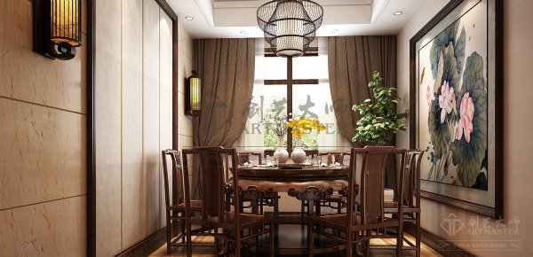 集成墙面融合了庄重与优雅的双重气质,通过后现代表现手法,把传统的结构形式通过重新设计组合以另一种民族特色的标志出现。