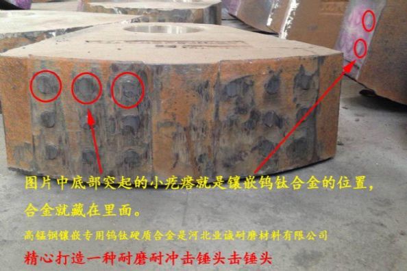 超高锰钢镶嵌*钨钛硬质合金锤头是针对所含SiO2异常