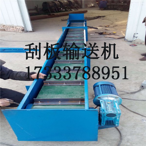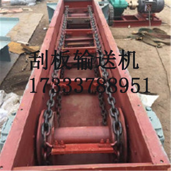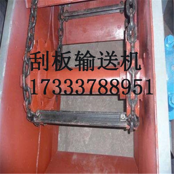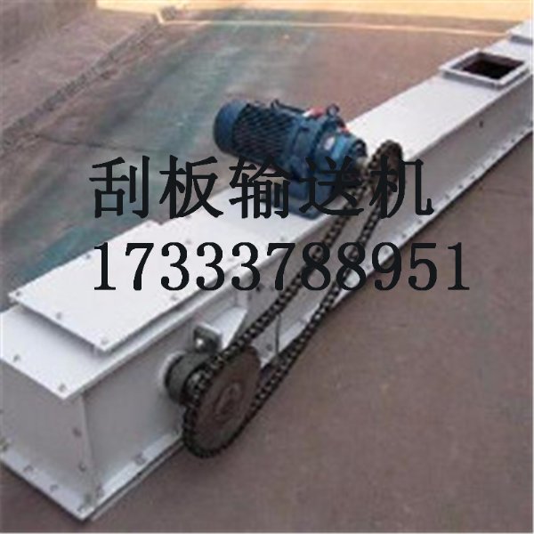 链条来输送散状物料的连续运输设备;由于在输送物料时,刮板链条全部埋在物料之中,故称为刮板机。该机结构简单、密封性好、安装维修方便、工艺布置灵活;它不但能水平输送,也能倾斜或垂直输送;既可单机使用、也可多台联合使用;能多点加料、也能多点卸料。由于壳体封闭,因此在输送大的、有毒、易爆、高温物料时可以显著地改善工人的工作环境和防治环境污染。