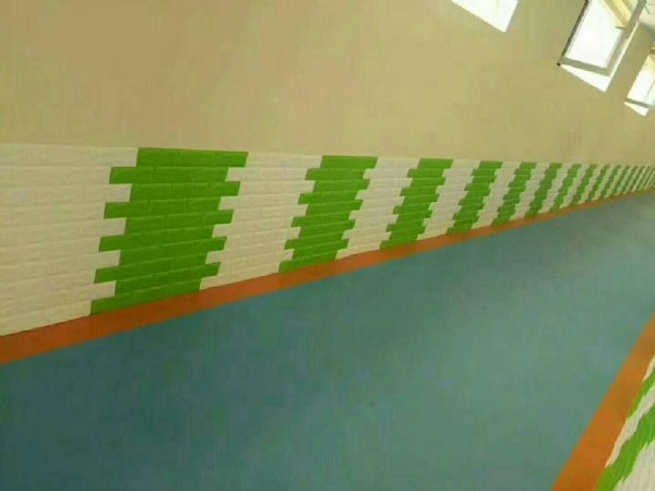 3.运动场馆,运动场馆一般孩子会稍微打一些,更衣室可以选择一般厚度的墙裙即可,如果是大型的运动场地可以选用厚度较大的软墙板。