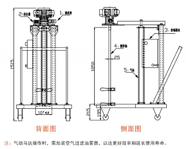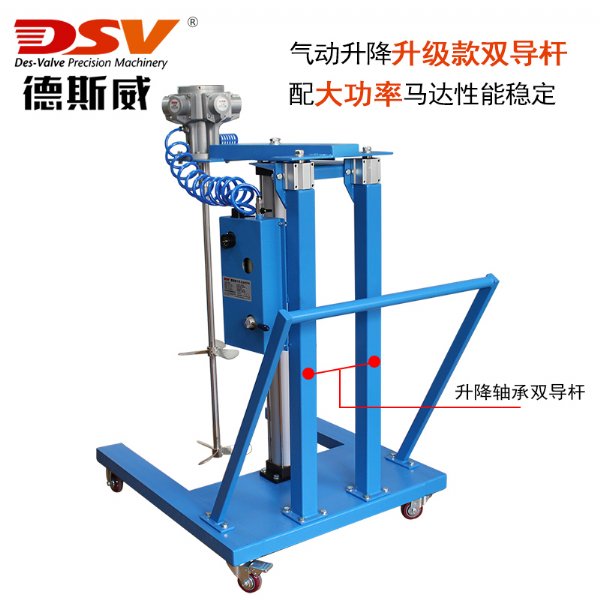 1)搅拌容量:适合于200L以上开口桶,气动升降方式。