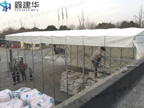 不锈钢型材,加之制作工艺精湛,因此,骨架使用寿命极长,而推拉车库布料也是采用进口网布或加厚PVC牛津布缝合,使整个推拉车库更加协调美观耐用;