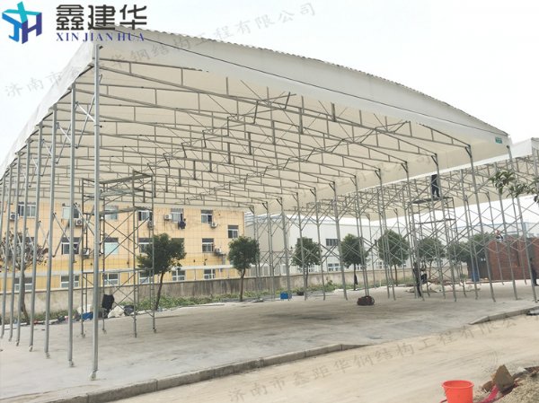 济南鑫距华厂家低价直销:篮球场遮雨蓬、收缩