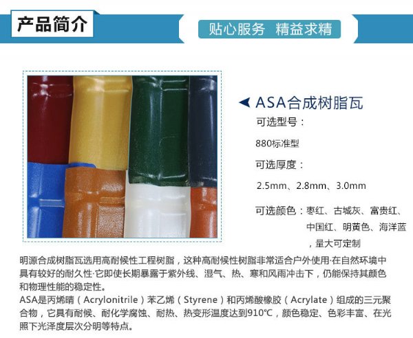 树脂瓦,是运用高新化学化工技术研制而成的新型建筑材料,具有重量轻、强度大、防水防潮、防腐阻燃、隔音隔热等多种优良特性,普遍适用于开发区
