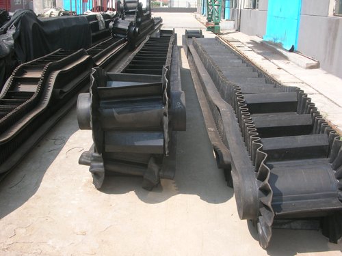 滚筒,档边设计成波纹状;横隔板的作用是承托物料,为了实现大倾角输送,采用T型TC型。档边和横隔板是用二次硫化的方法与基带连接的,具有很高的连接强度。用于输送易散落的粉状、粒状、小块状、糊状及液态状物料。