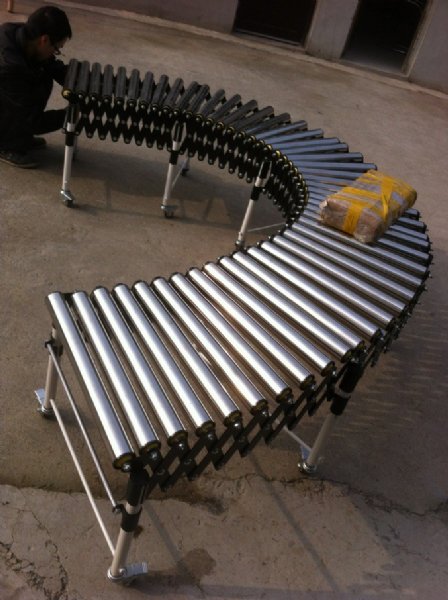 输送机是利用可伸缩的组件做主架,机体可自由变向,改变任意角度,支腿高度可以调节,下部设有