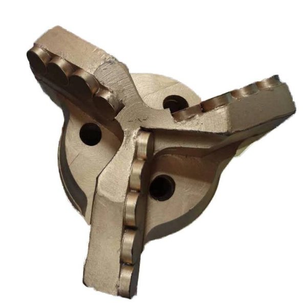 刮刀钻头是石油钻井在上部松软地层中常用的一种带有翼片的切削钻头,其有双翼、三翼、四翼之分,*常用的是三翼刮刀钻头。翼片外形有阶梯形和无阶梯形的两种,其刃部镶焊有