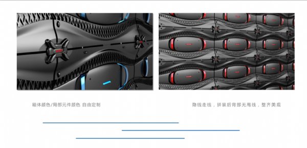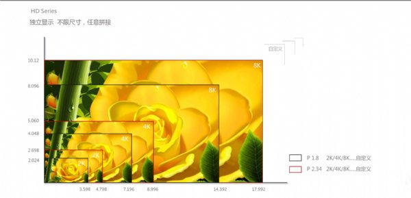 5、箱体与模组支持点对点高清显示拼接,轻松实现FHD、2k、4k、8k大屏拼装;