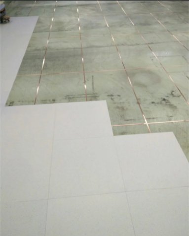 1.清洁地面----2.铺设铜箔(600*1200mm 网络状)----3.预
